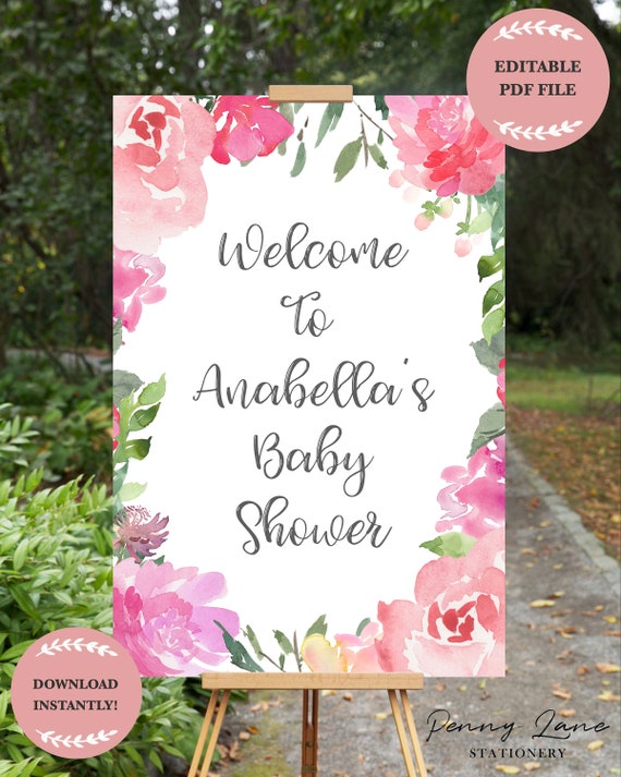 Design For Baby Shower Boards Pdf - Editable Baby Shower Welcome Sign Template Calligraphy Font Instant Download Littlesizzle