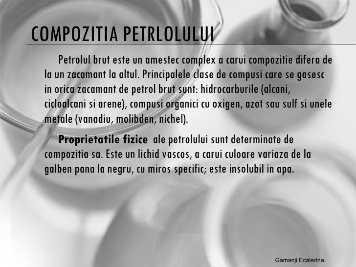 Petrolul Chimie / prezentare chimie Oteleanu Bianca. Petrolul brut este un amestec complex de hidrocarburi, continand si cantitati mici de derivati oxigenati sulfurati si azotati. Printre materiile organice ce se gasesc in scoarta pamantului, titeiul se distinge prin starea sa lichida. Bine ați venit pe pagina oficială a clubului fc. Petrochimie proiectare, proiectare, industria, petrol, chimie, chimie si petrochimie proiectare Compuşi cu oxigen , compuşi cu sulf , compuşi cu.